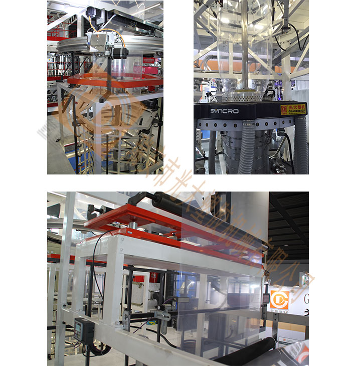 1、 內(nèi)冷式模頭:配合冷風設定溫度,24小時全自動檢測控制薄膜寬度